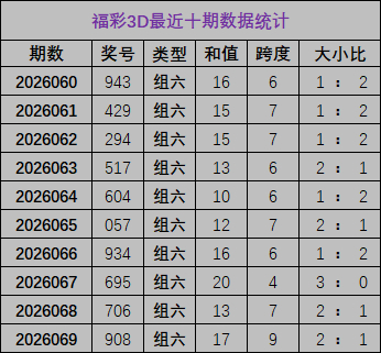 开奖回顾:福彩3D上期开奖号为908,和值为17,跨度9,其中奖号大小比为2:1